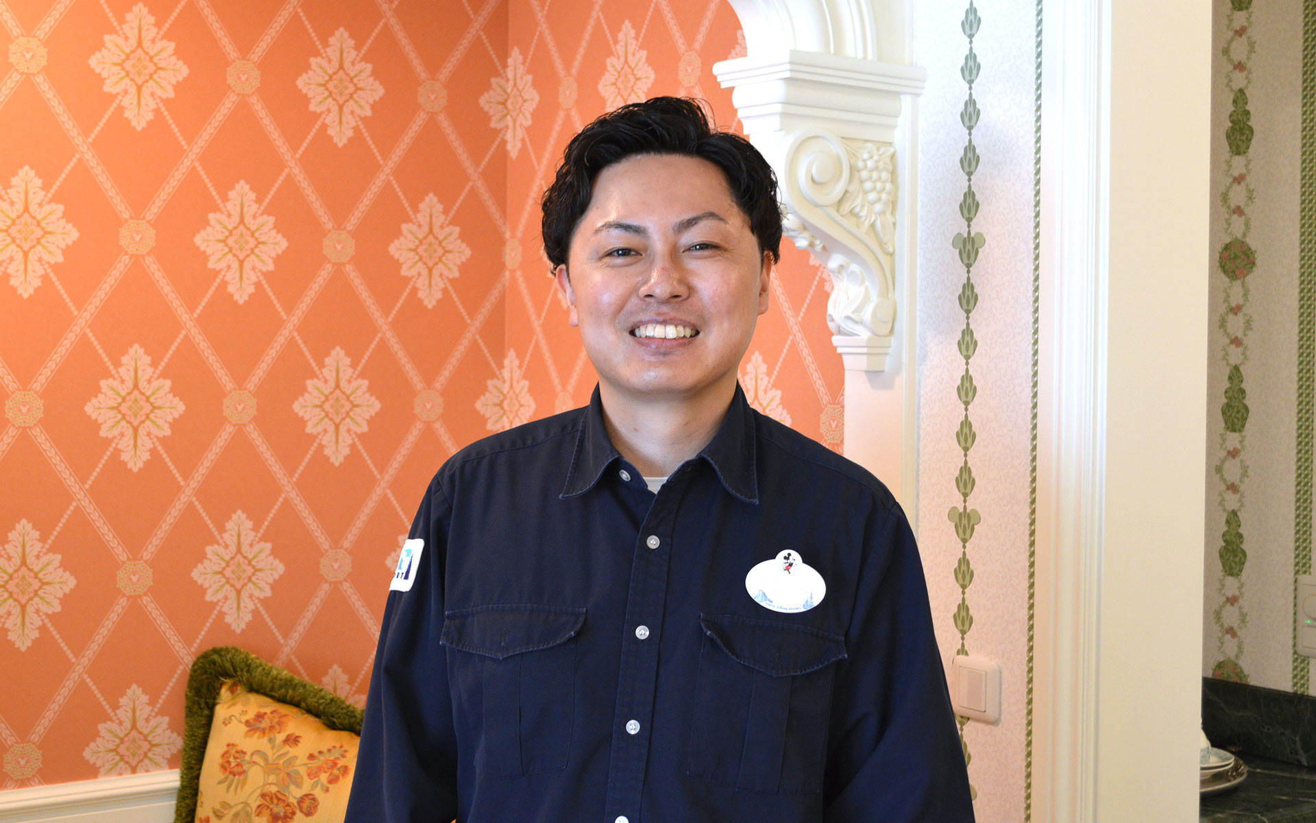 これまでオフィスビルの施設管理に長く従事していたので、現在もその経験・スキルを活かしディズニーホテルの施設管理を行っています。主な業務内容としては設備の日常点検や定期的な整備で、空気・電気・水道などホテル滞在の基盤を整える重要な役割を担っていると感じています。また、客室の不具合箇所の修繕なども業務の一部で、宿泊するゲストが室内で快適に過ごせるように努めています。