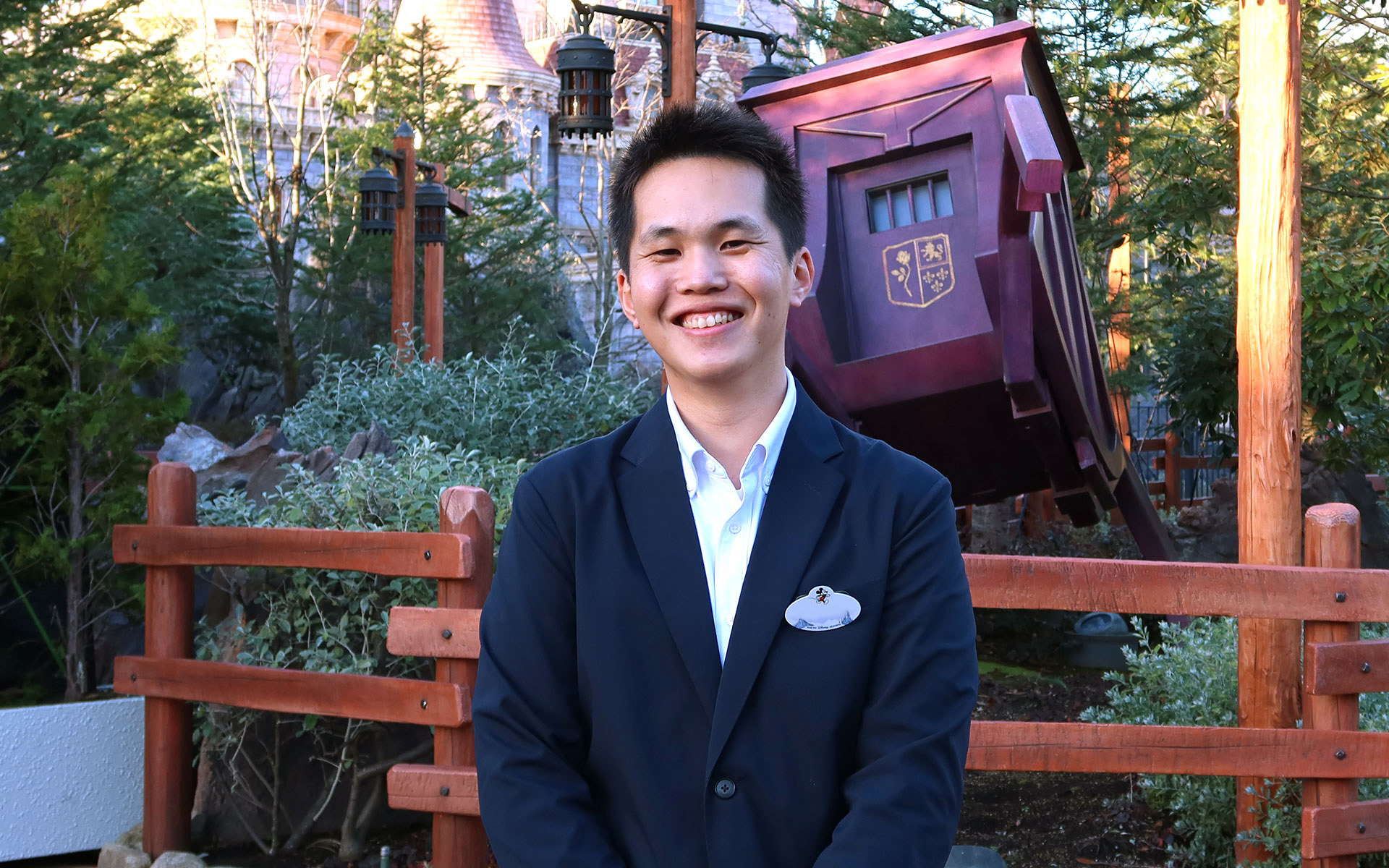 普段は人目につかない業務ではありますが、一部ホテルからもテーマパーク内が見えるため、私たちの仕事を見たゲストからお声がけいただくこともあります。以前、テーマパークオープン前のメインエントランスでゲストの方から「いつも綺麗にしてくれてありがとう」「将来ナイトカストーディアルになりたいです」と声を掛けていただいたことがありました。私たちの事を知ってくれていることに大きな喜びを感じると同時に、より一層身の引き締まる思いで業務に取り組んでいます。普段はゲストの皆さんとお会いできる機会は少ないですが、また来たいと思うテーマパークを提供することはもちろん、縁の下の力持ちとして東京ディズニーリゾート®に携わる全ての人が気持ちよく働くことが出来る環境を整えることでより良いゲストサービスに繋がると思っています。一緒に東京ディズニーリゾート®にとって、なくてはならない存在になりましょう!
